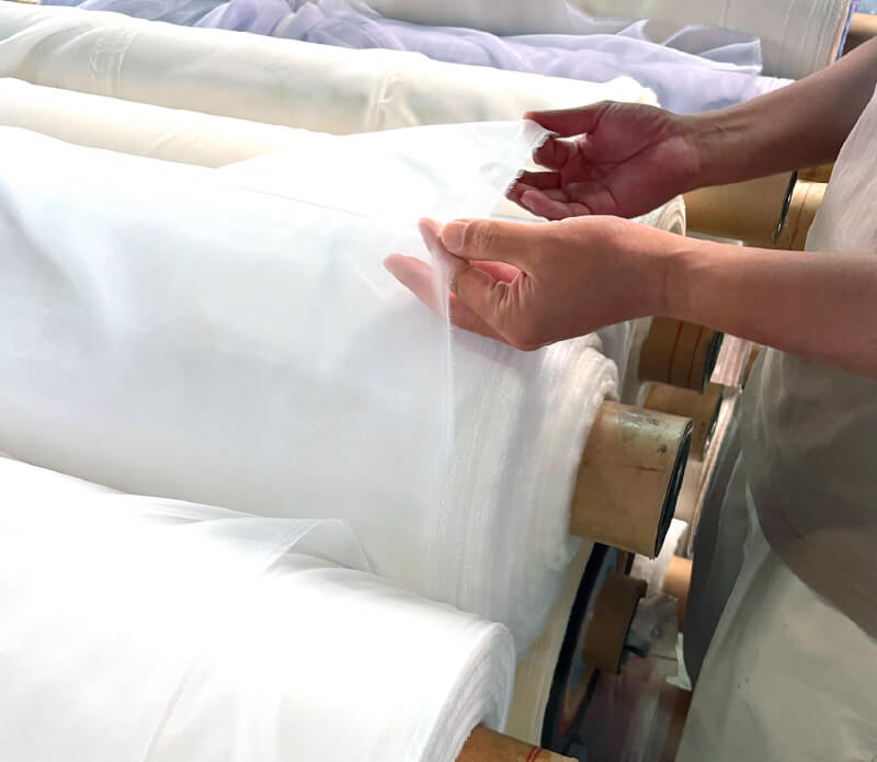 ウェディングドレスやフォーマル生地に求められる繊細さに対応。